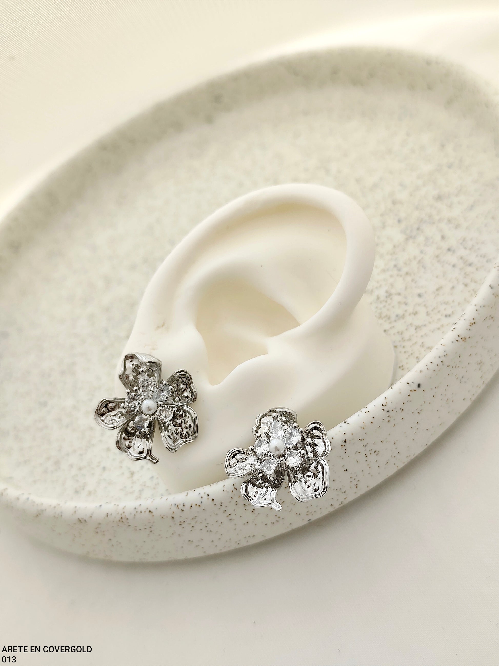 Aretes en covergold plateado con una rosa delicada y brillante, un diseño femenino y elegante ideal para darle un toque romántico a cualquier look ✨🤍🌹