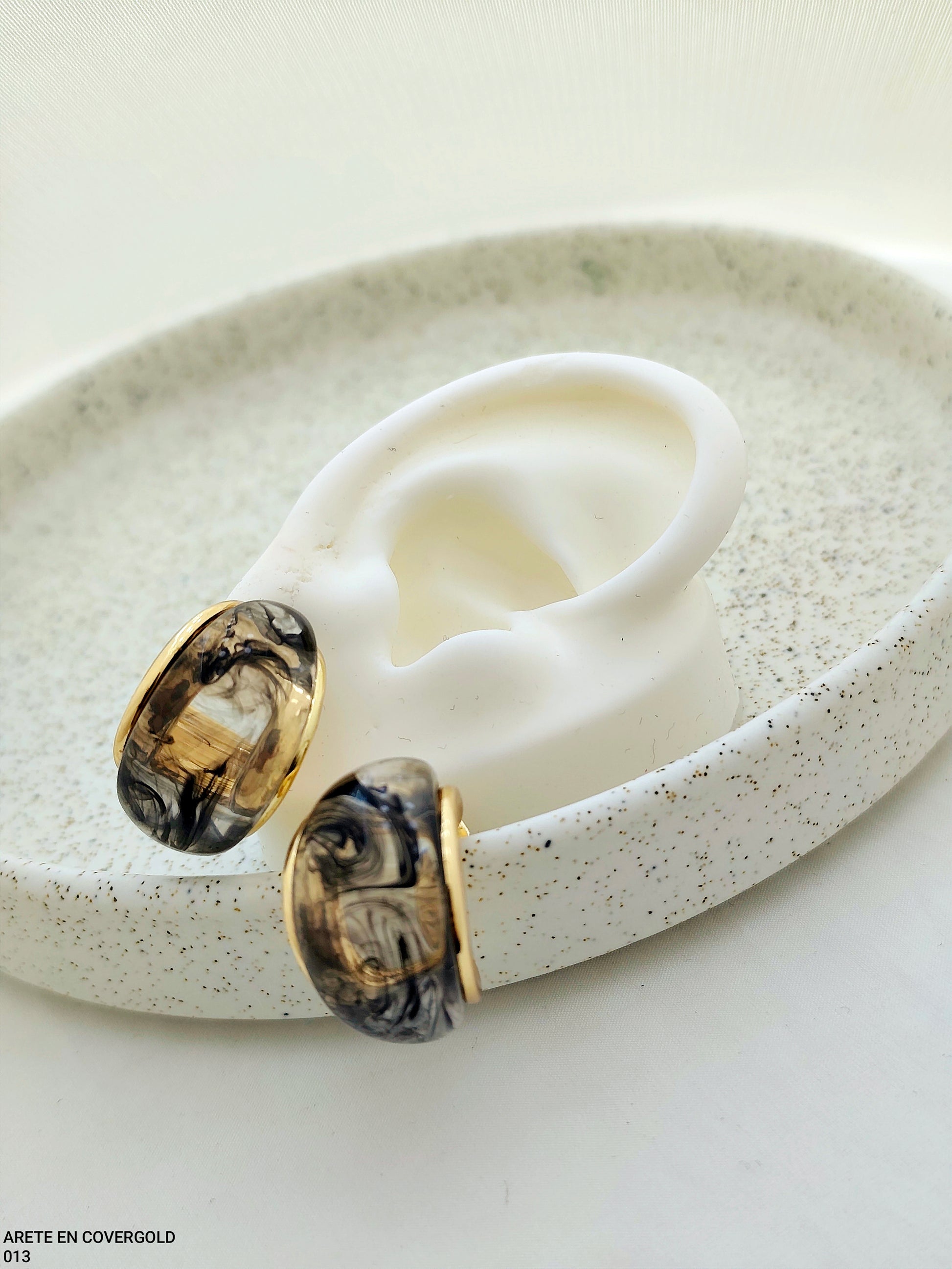 Aretes en covergold con acabado marmolado en negro y dorado, perfectos para un toque sofisticado y versátil que combina con todo ✨🖤💛