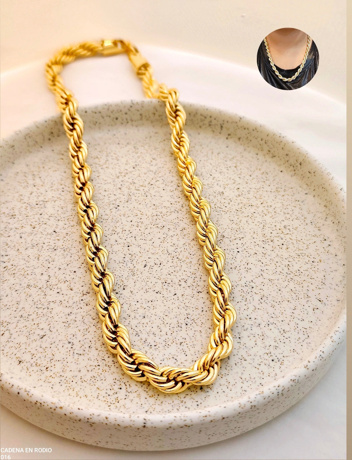 Cadena Lasso gruesa en rodio dorado. Diseño moderno con gran presencia y brillo intenso, ideal para lucir sola y destacar tu estilo. 💛