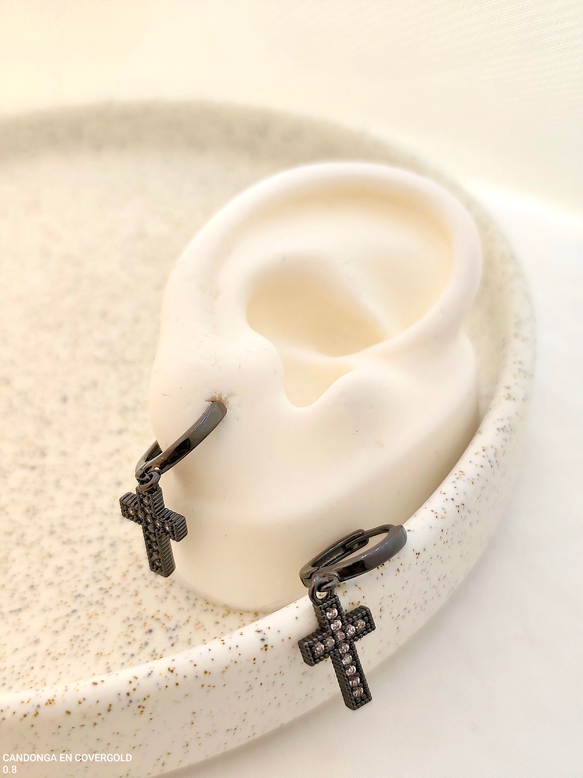 Candonga en covergold con cruz colgante completamente negra con brillantes. Estilo moderno y elegante.