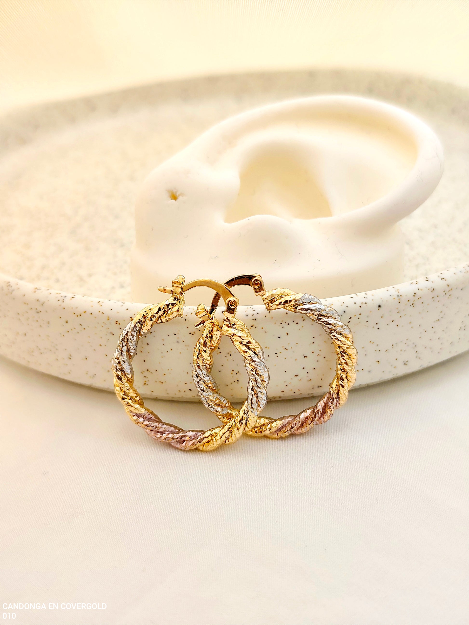 Candonga en covergold tres oros, ligera y brillante, ideal para darle un toque especial a tu outfit. ✨💛🤍🧡