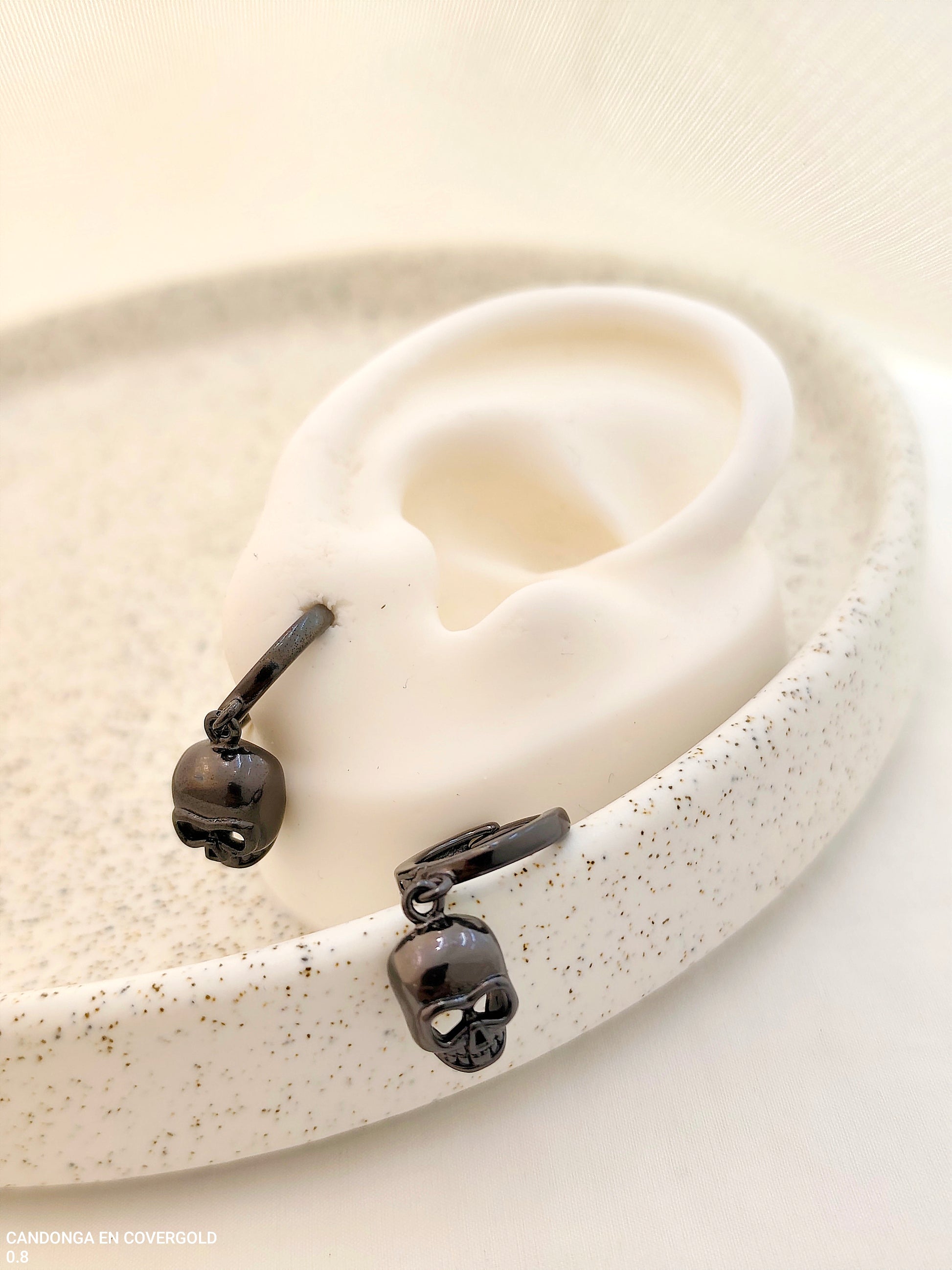 Candonga en covergold negro con pequeña calavera colgante. Estilo urbano y moderno.