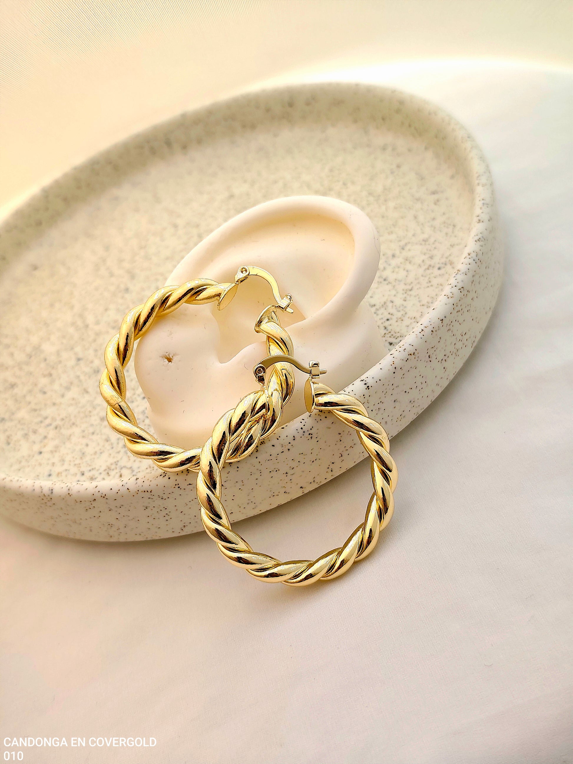 Candonga en covergold dorada con diseño trenzado, moderna y elegante, perfecta para aportar un toque sofisticado a tu look diario. ✨💛