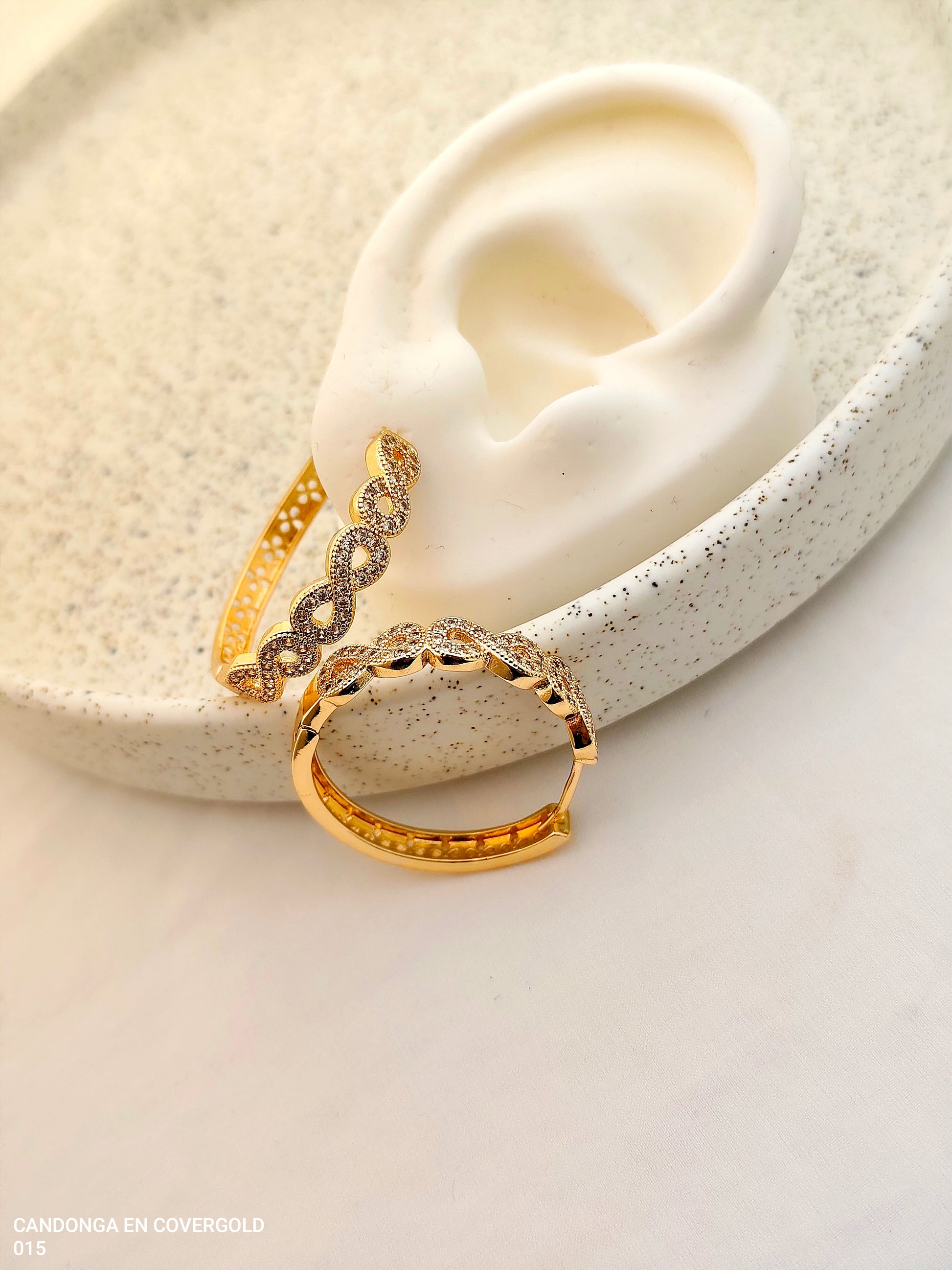 Candonga en covergold dorada con diseño de infinitos brillantes, elegante y delicada, ideal para añadir un toque especial y luminoso a tu look diario. ✨💛