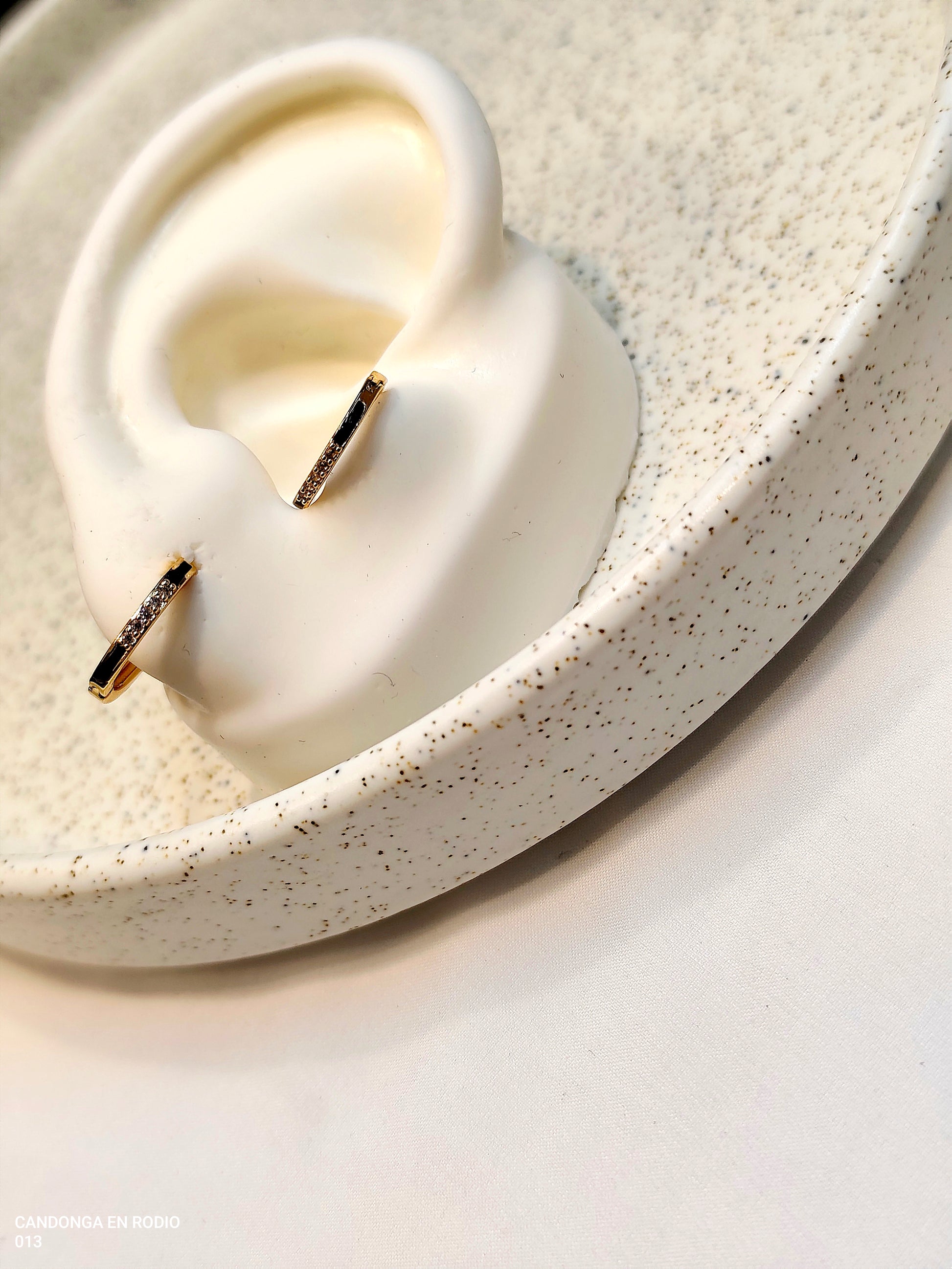 Candonga en rodio dorada, pequeña y brillante, con un delicado detalle de perlitas que aporta un toque sutil y elegante, ideal para complementar cualquier estilo.