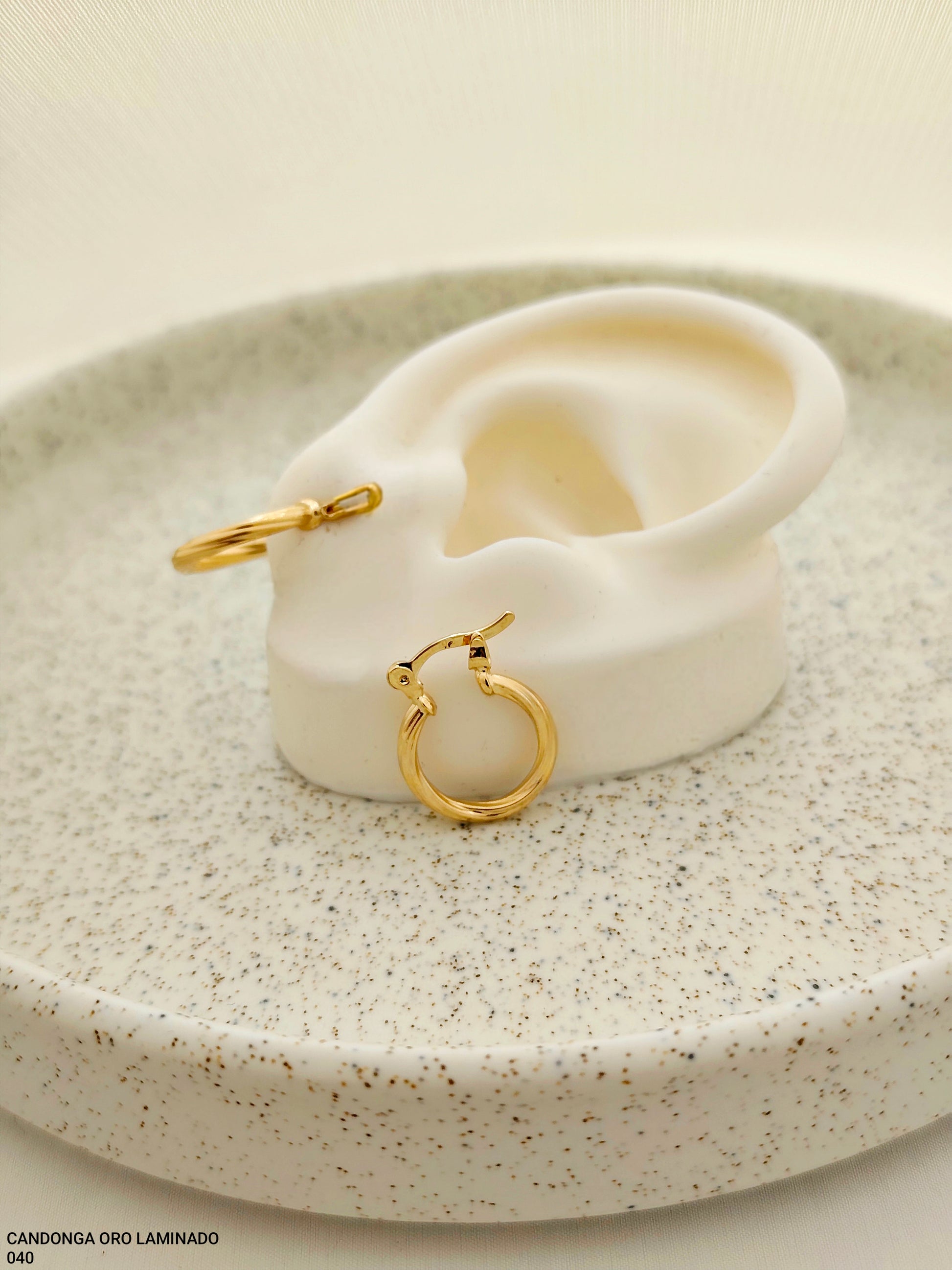 Candongas pequeñas en oro laminado, con un diseño clásico y delicado que aporta un brillo sutil y sofisticado. Ideales para uso diario o para complementar cualquier look con un toque dorado atemporal ✨💛
