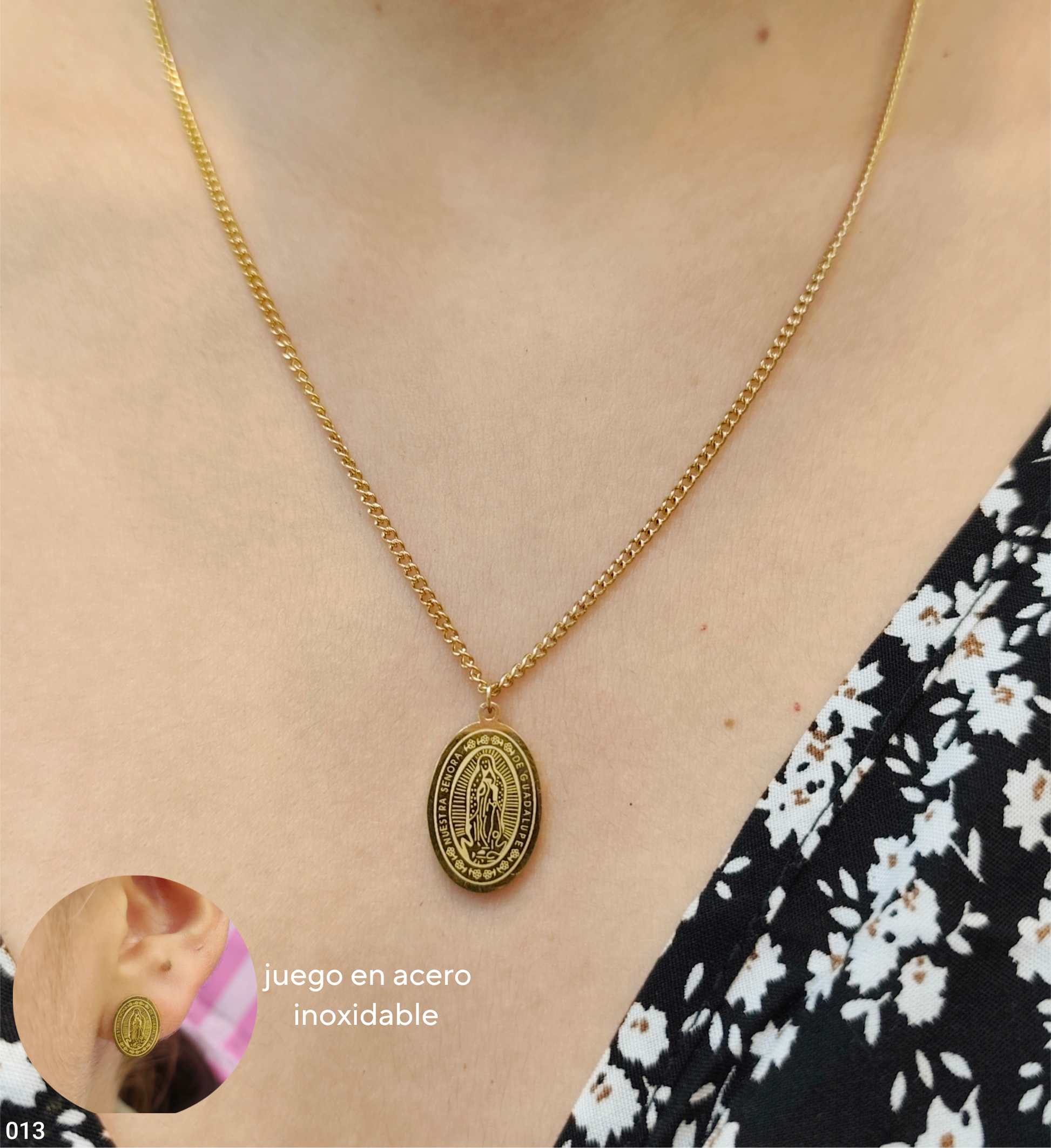 Resistente, elegante y perfecto para uso diario. Incluye collar y aretes con acabado brillante que no se oxida ni pierde el color.¡Una opción duradera y con mucho estilo!