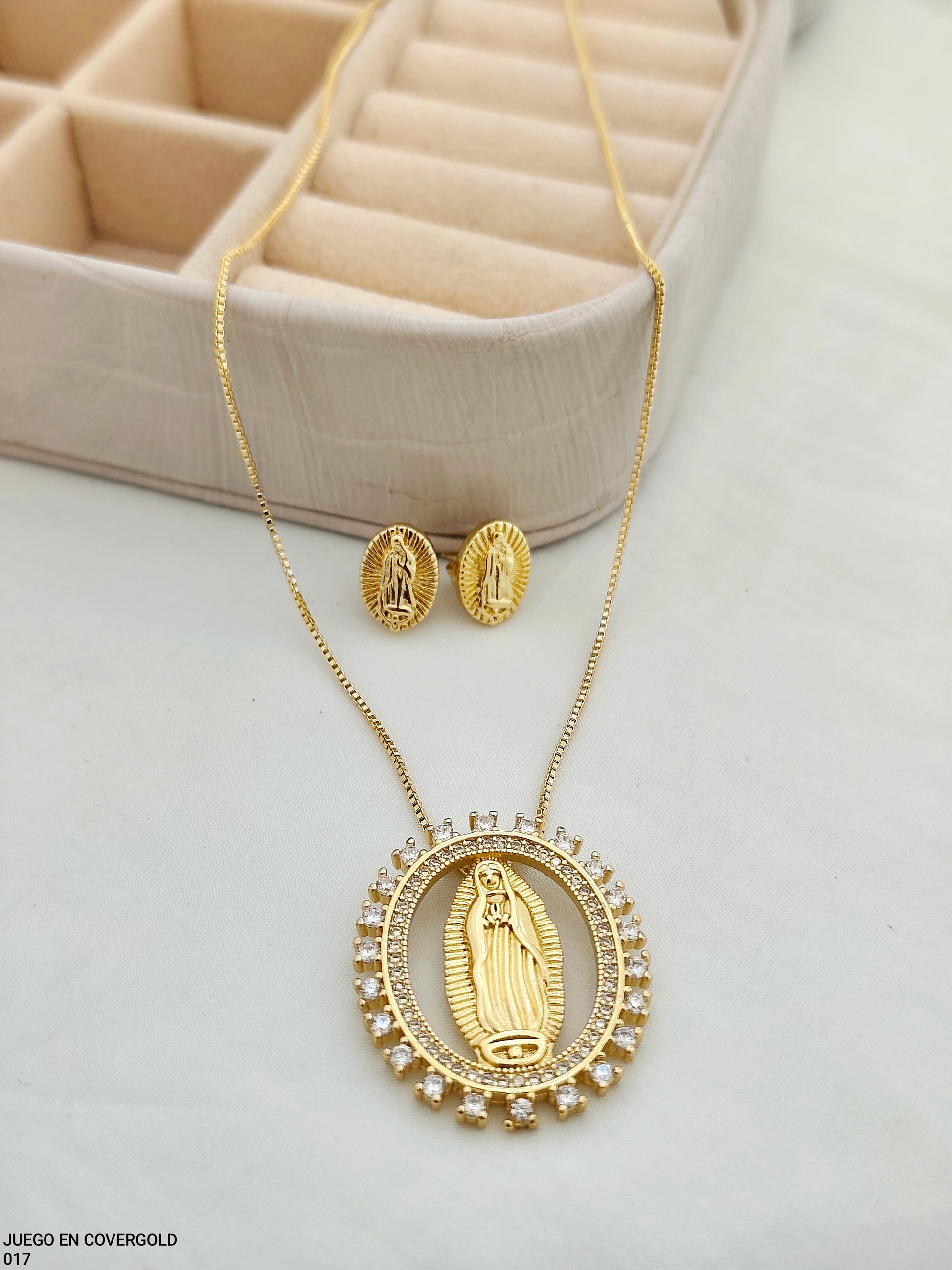 Juego en covergold dorado, incluye cadena y dije de la virgencita. Diseño elegante, con buen brillo y perfecto para uso diario o para regalar.