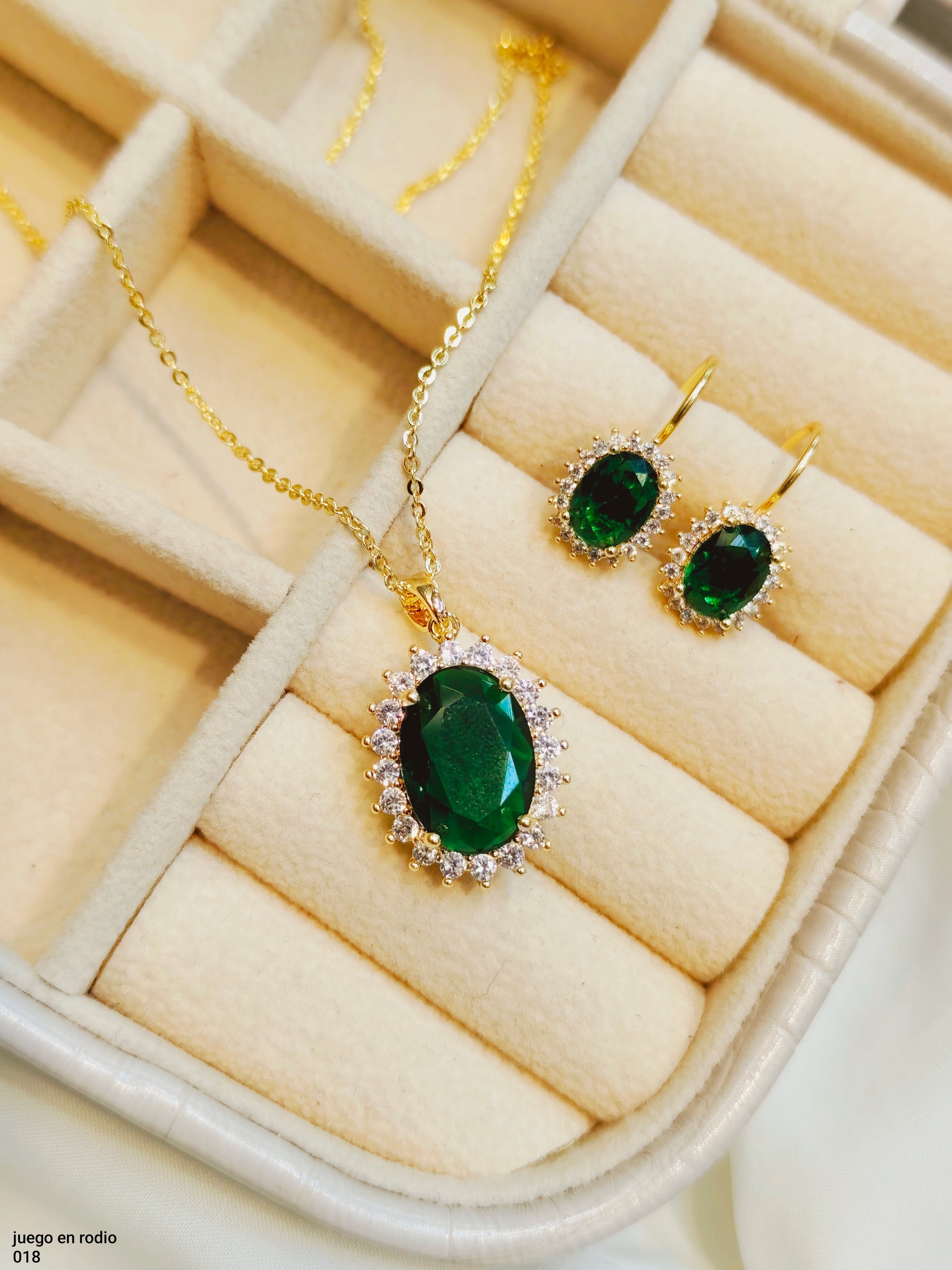 Incluye cadena y aretes con un acabado brillante y duradero. Un conjunto elegante y versátil que complementa perfectamente cualquier outfit.