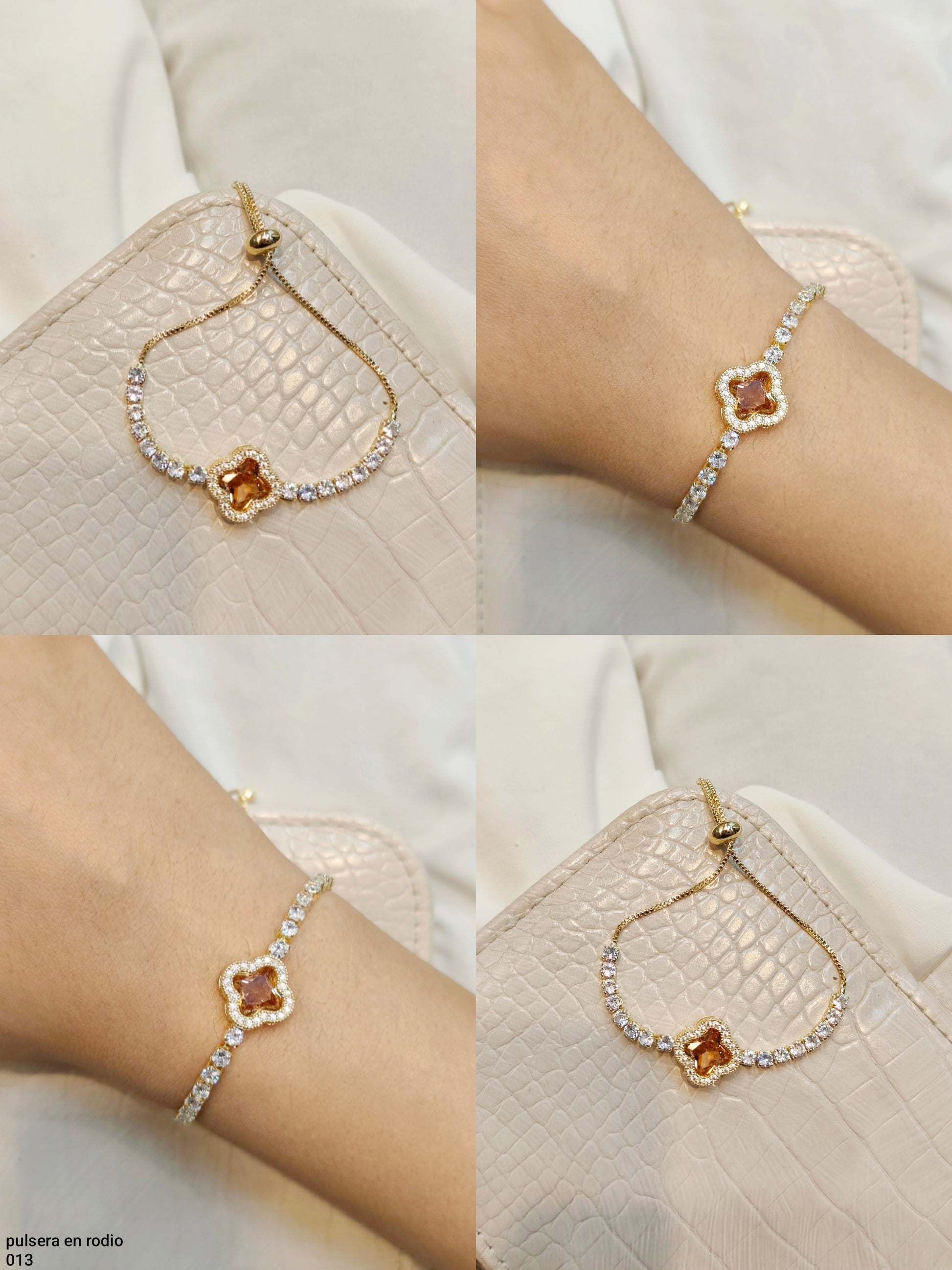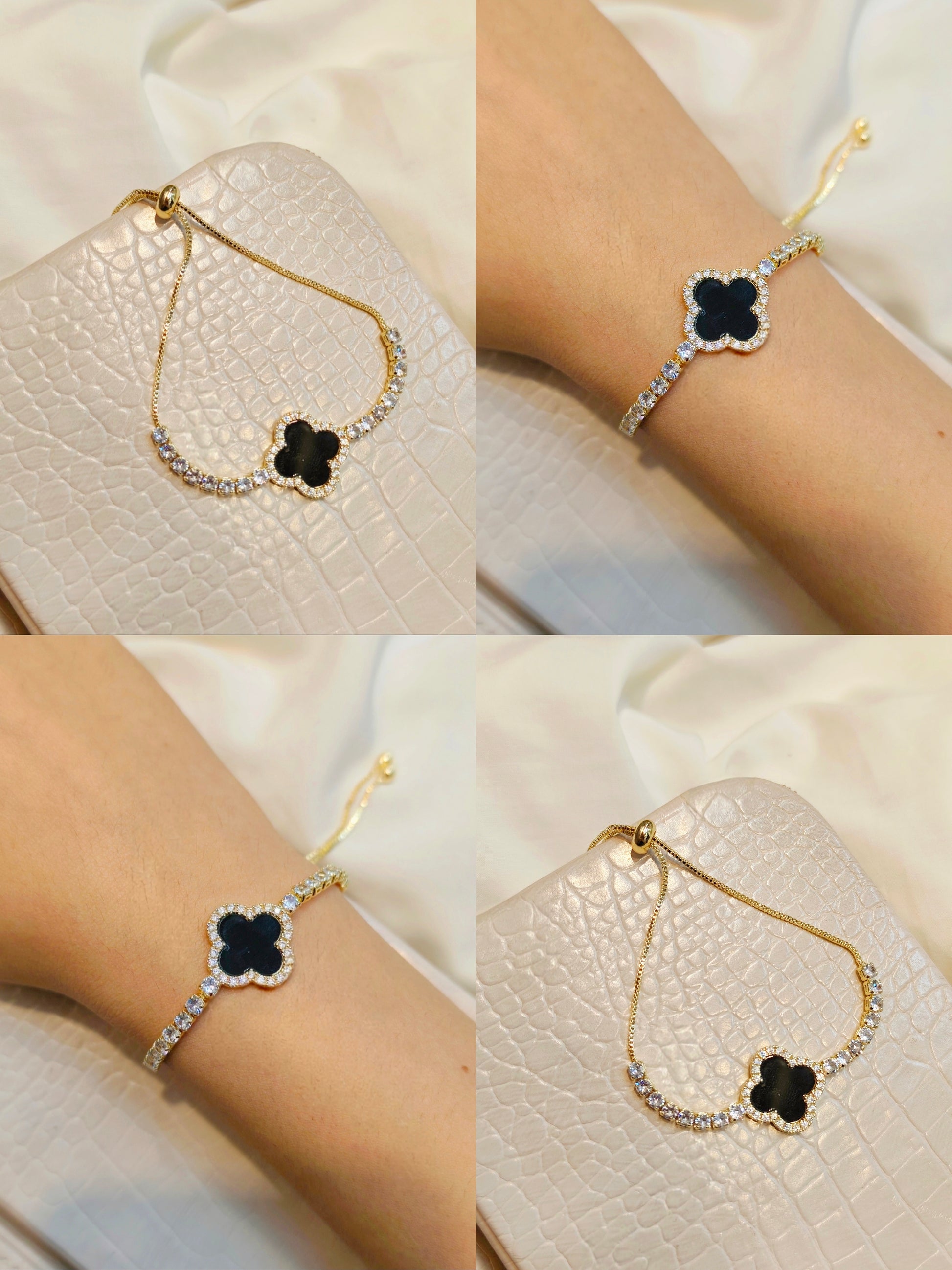 Elegante y delicada, con detalle central estilo Van Cleef y diseño graduable para un ajuste perfecto. Una joya versátil para lucir todos los días o en ocasiones especiales.