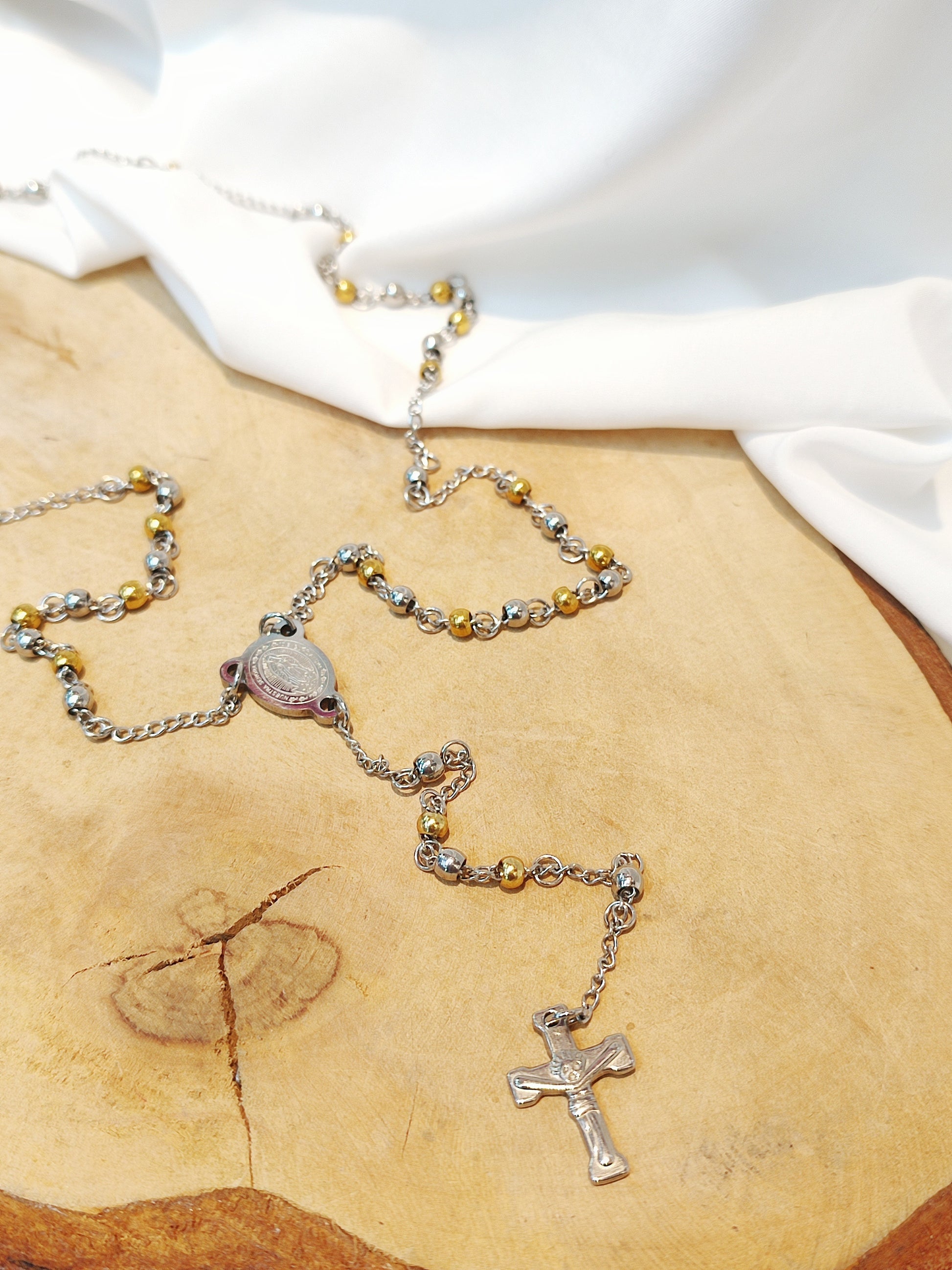 Con el Rosario Acero Bicolor, lucirás elegante y sofisticado.