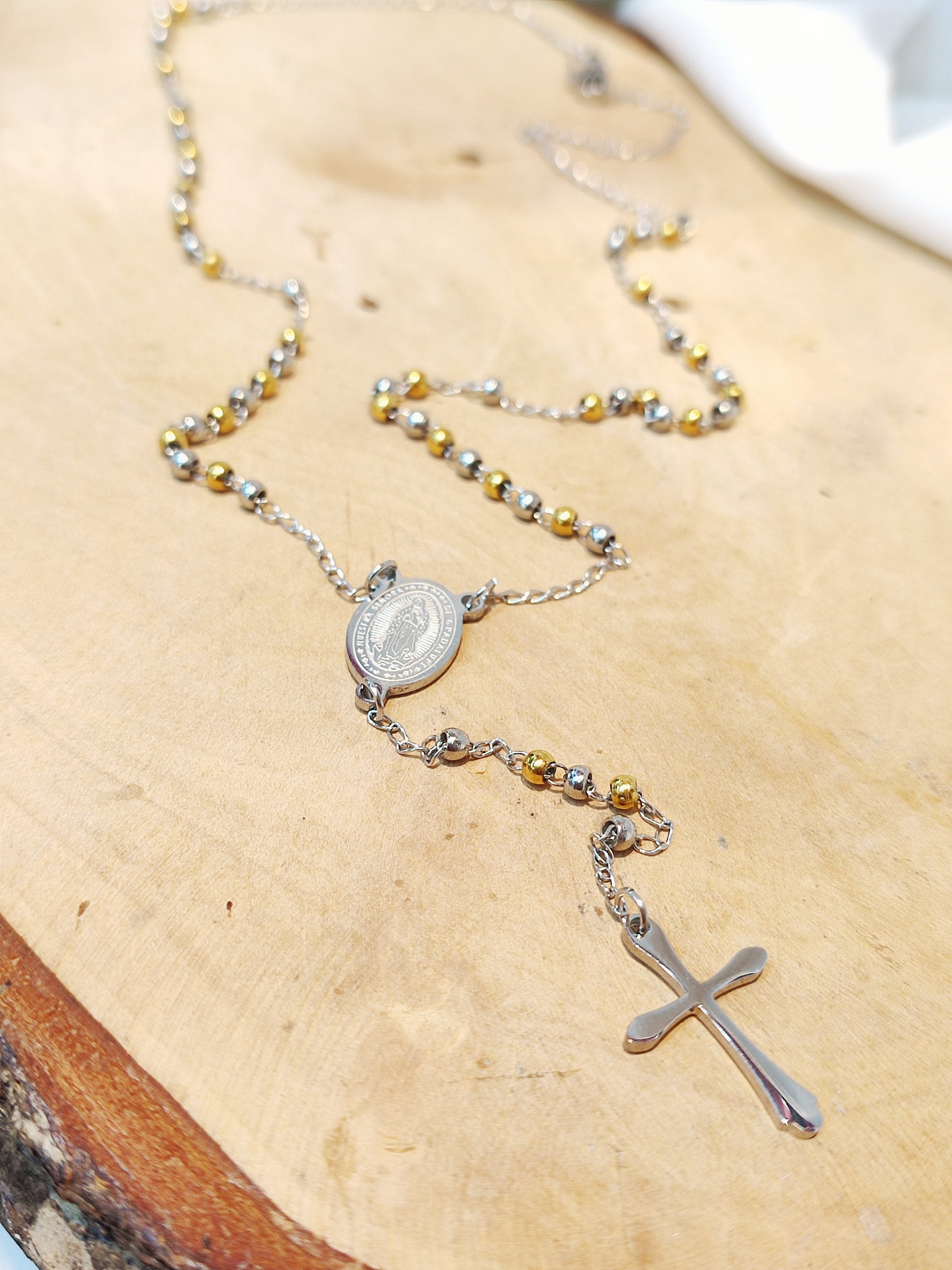 Disfruta de la elegancia y sofisticación con nuestro Rosario Acero Bicolor.