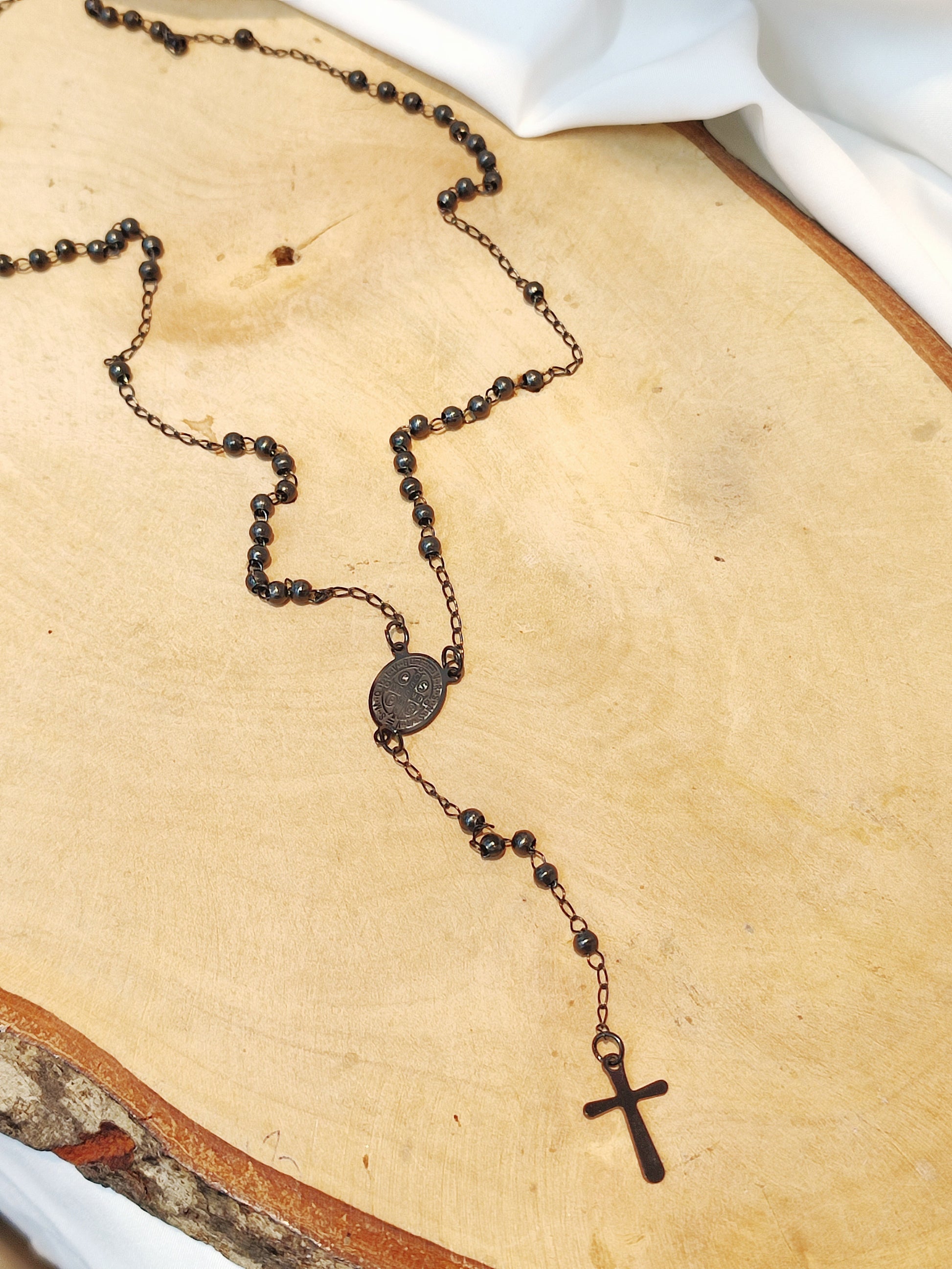 Este rosario de acero negro es una pieza de joyería lujosa y exclusiva.
