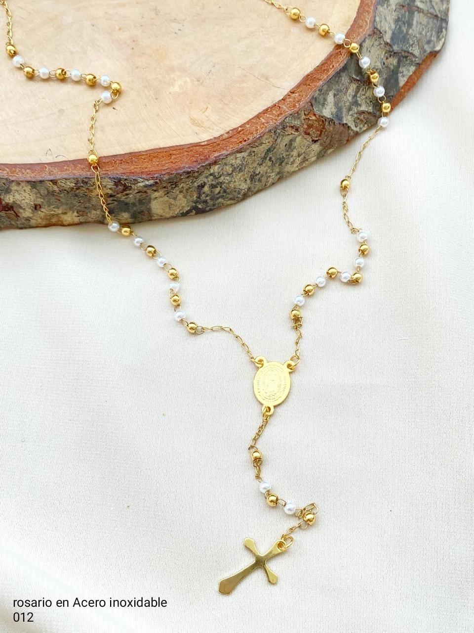 Descubre la elegancia y exclusividad de nuestro Rosario en Acero. Hecho con perlas y acero inoxidable, este rosario ofrece una experiencia única en la meditación y la oración. Une la fuerza del acero con la delicadeza de las perlas en este accesorio de alta calidad.