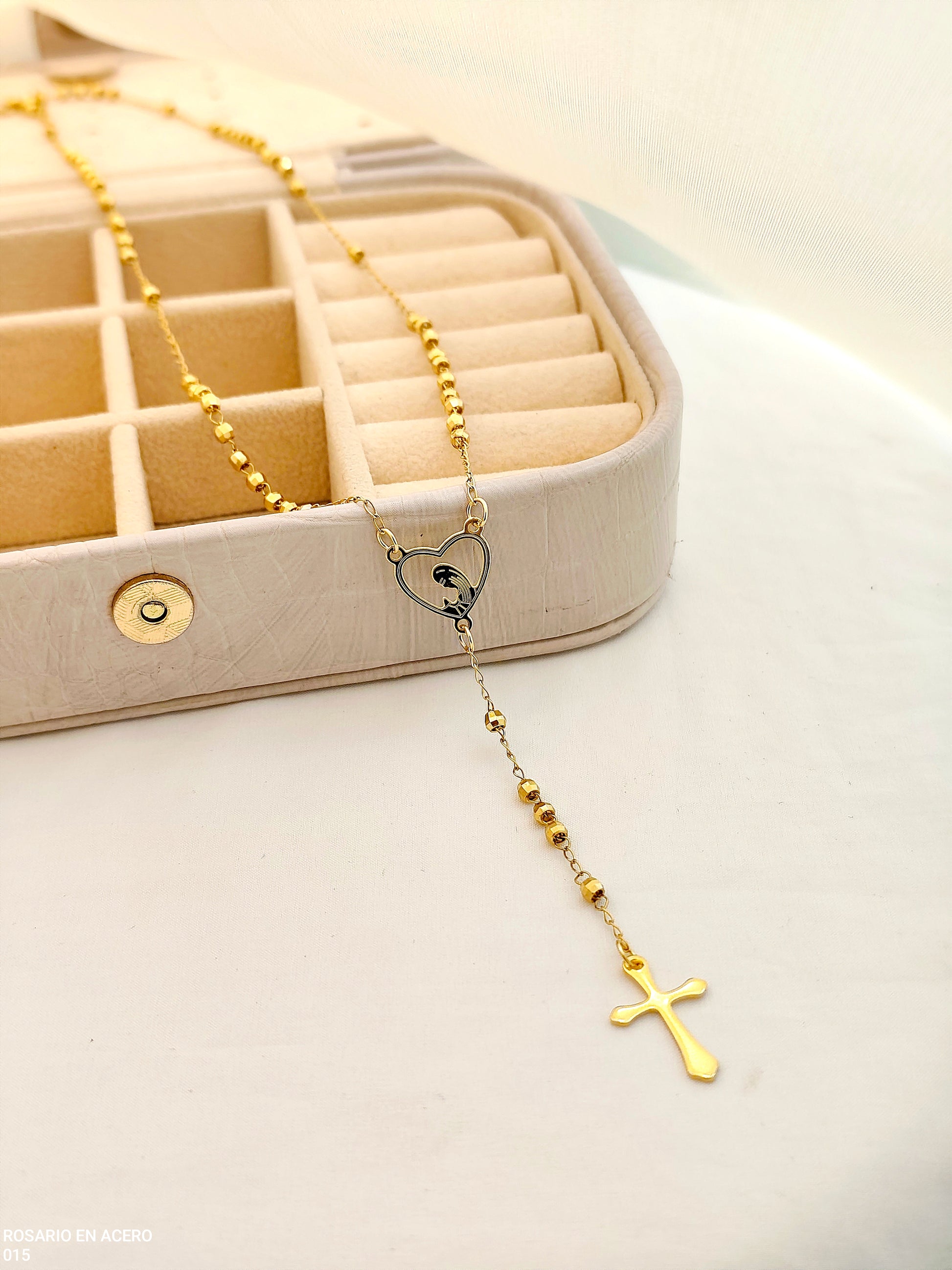 Rosario en acero inoxidable resistente, ideal para uso diario. Diseño clásico y elegante.