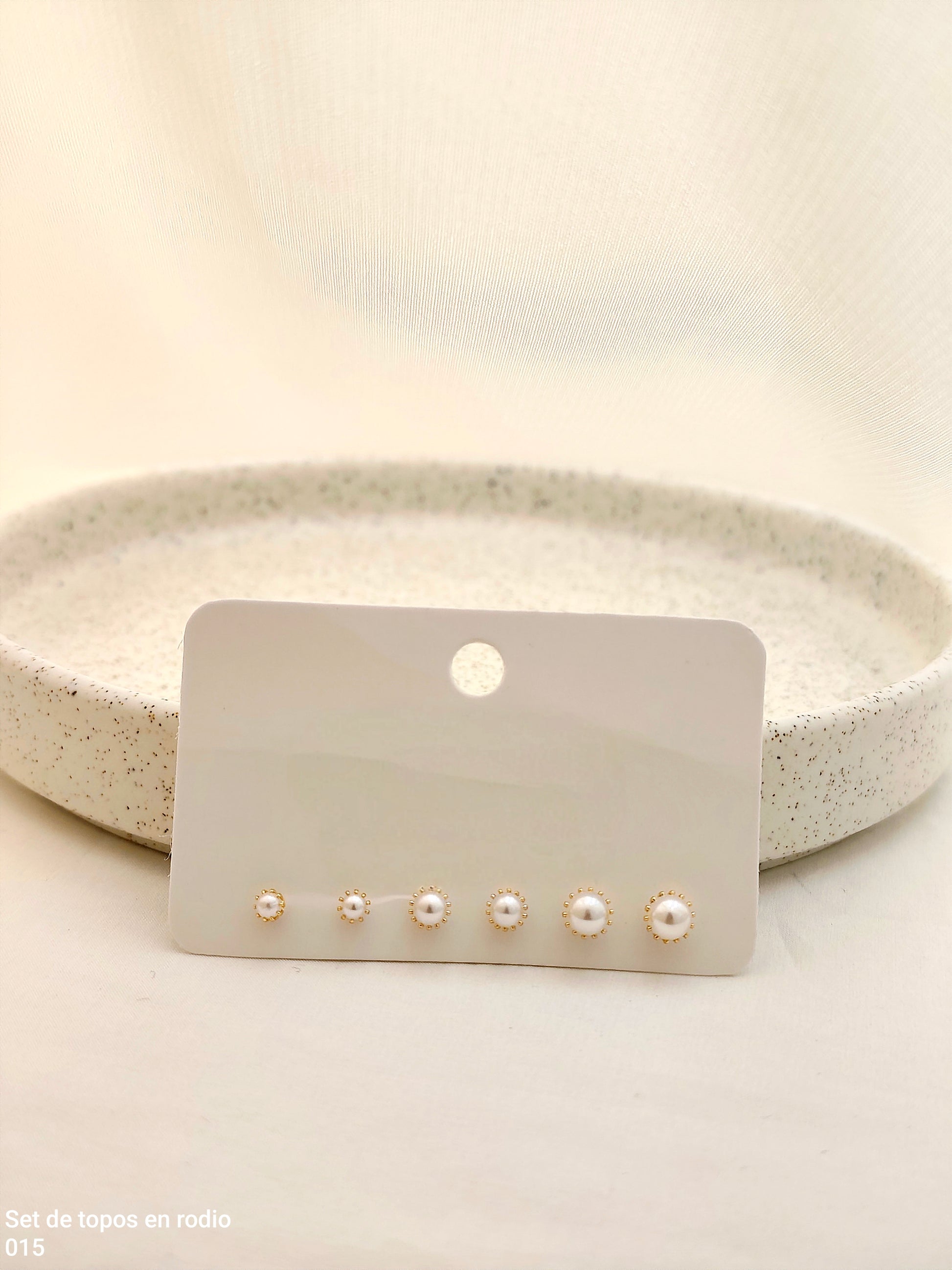 SET DE TOPOS en rodio brillantes con pepitas blancas, perfectos para añadir un toque luminoso y delicado a cualquier look, ideales para uso diario o combinar con otras piezas.