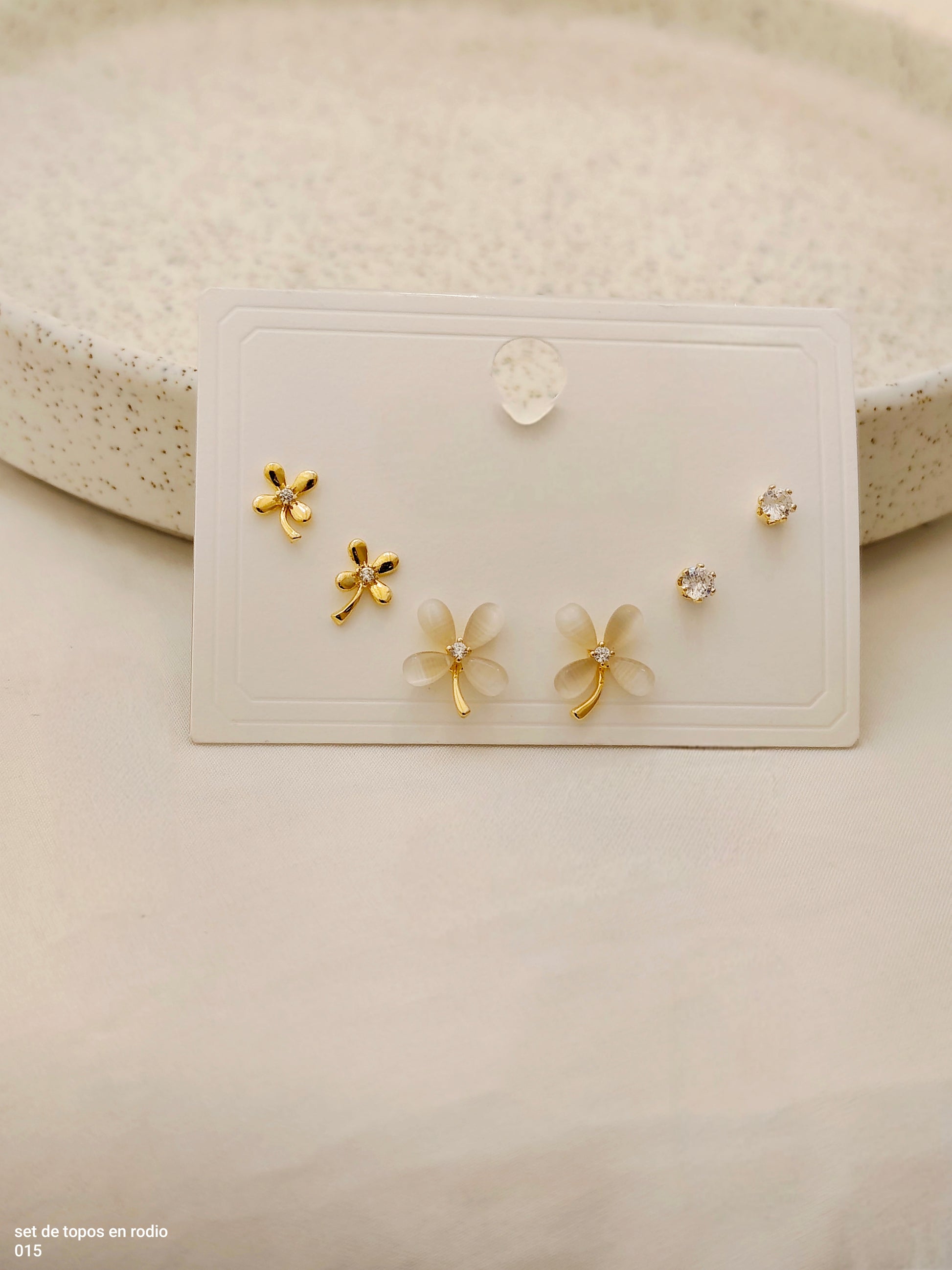 Tres estilos, un solo set. Este trío de topos en rodio combina brillo, elegancia y versatilidad. Perfectos para usar juntos o por separado según tu mood del día.