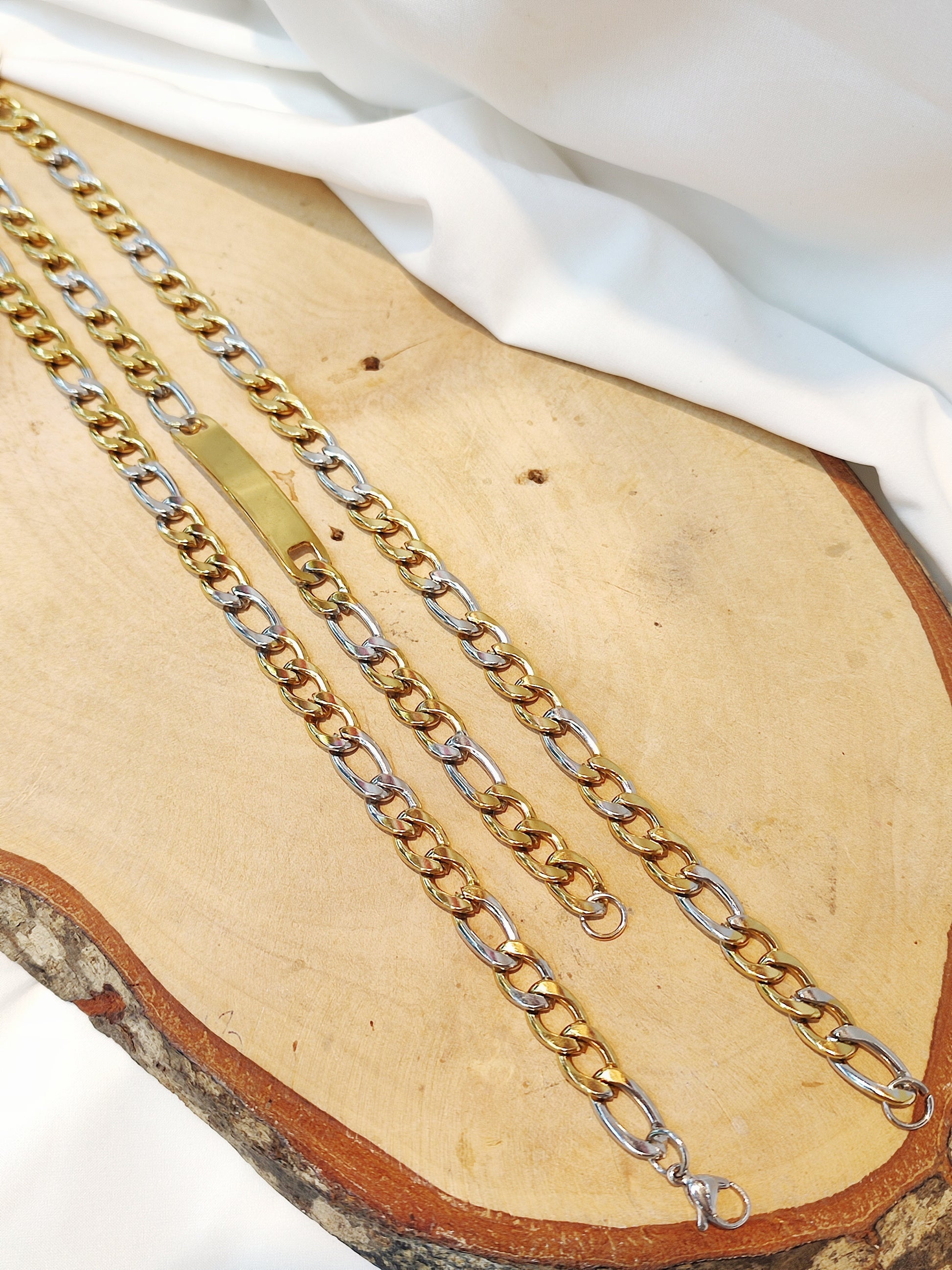 Set pulsera y cadena acero Bicolor
