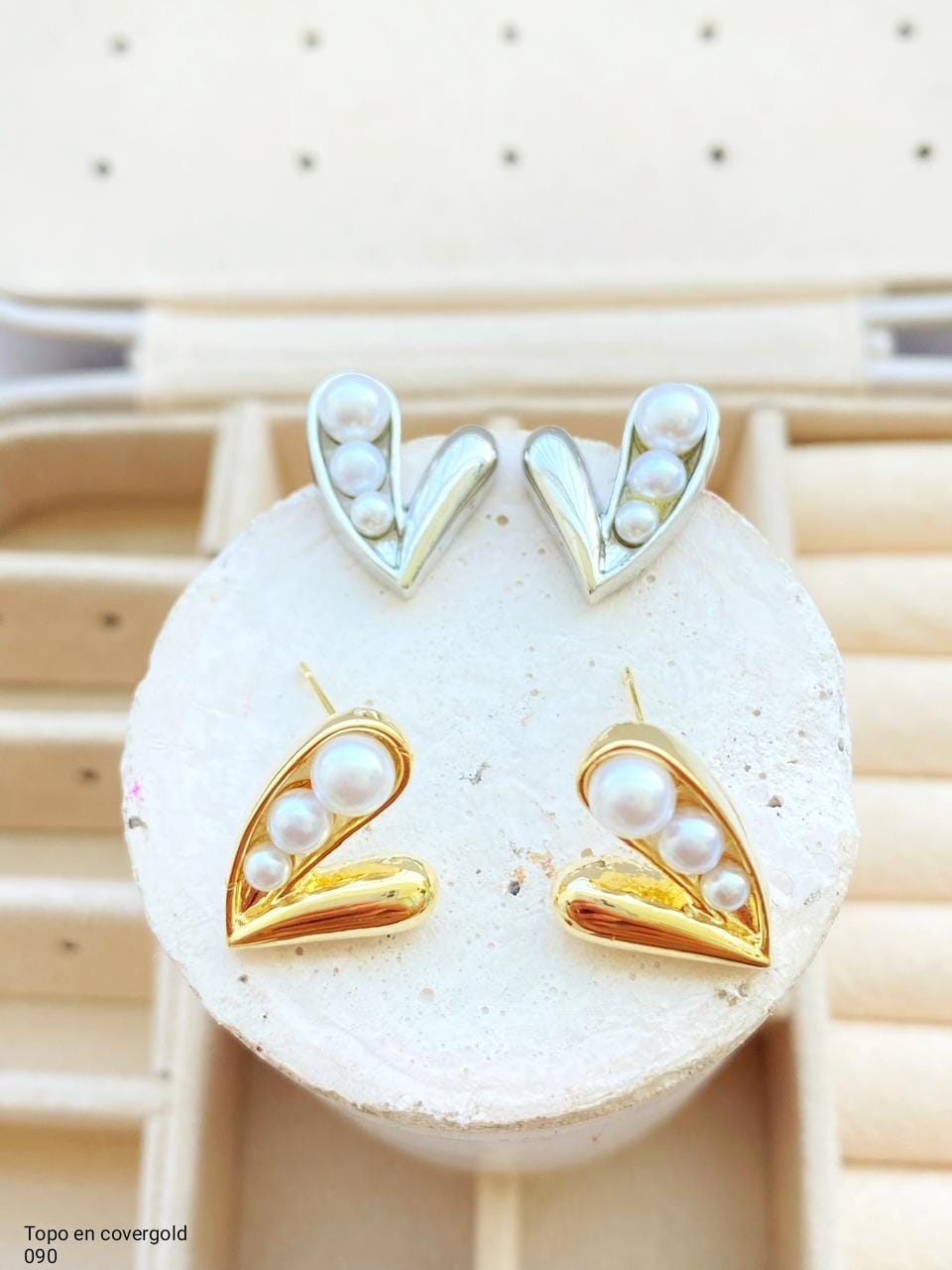 Resplandezca con nuestro Topo Cover gold, un accesorio exquisito en forma de corazón con perlas.