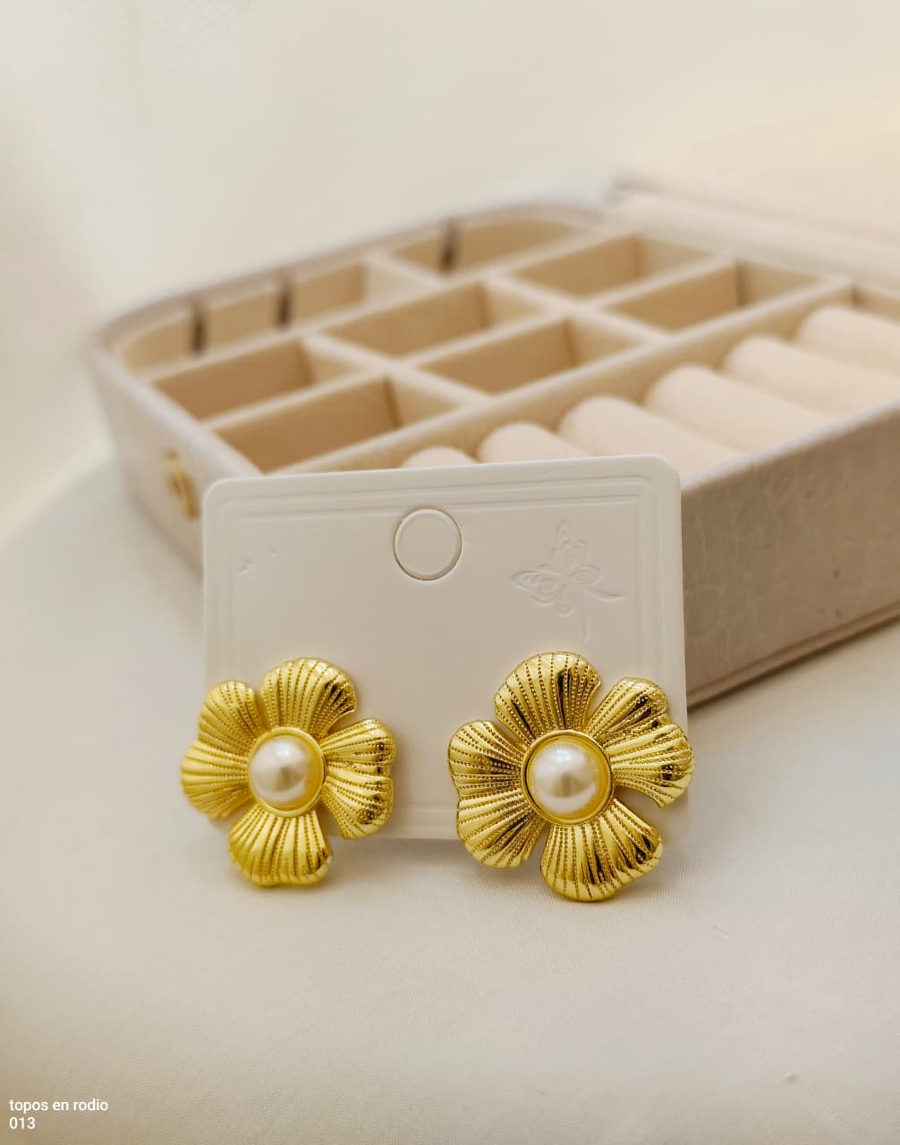 Topo en rodio con diseño de flor. Delicado, brillante y perfecto para uso diario.